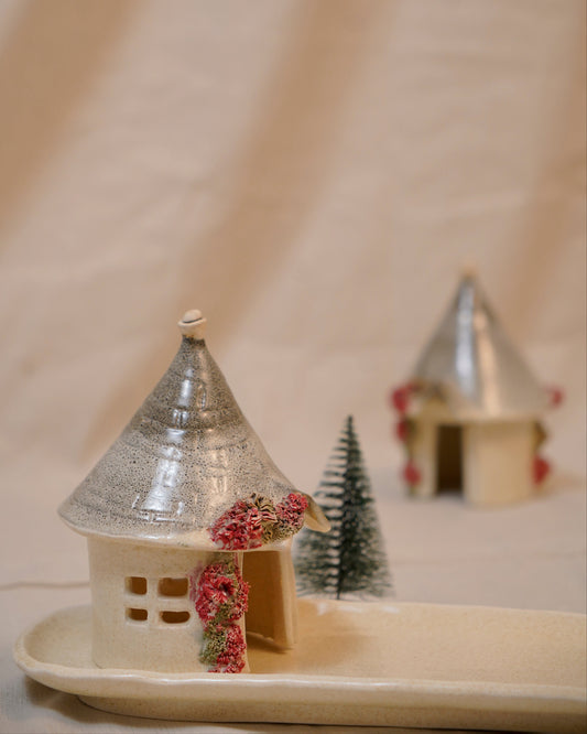Tea Light Candle Holder - Single Trullo hut with Tray